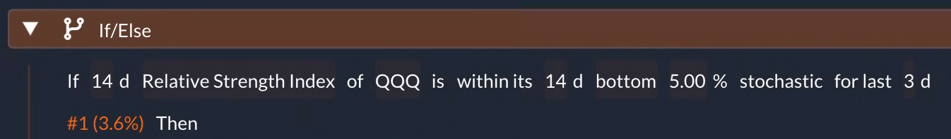 Example 2: This one gauges QQQ’s Stochastic RSI to ride oversold bounces:
